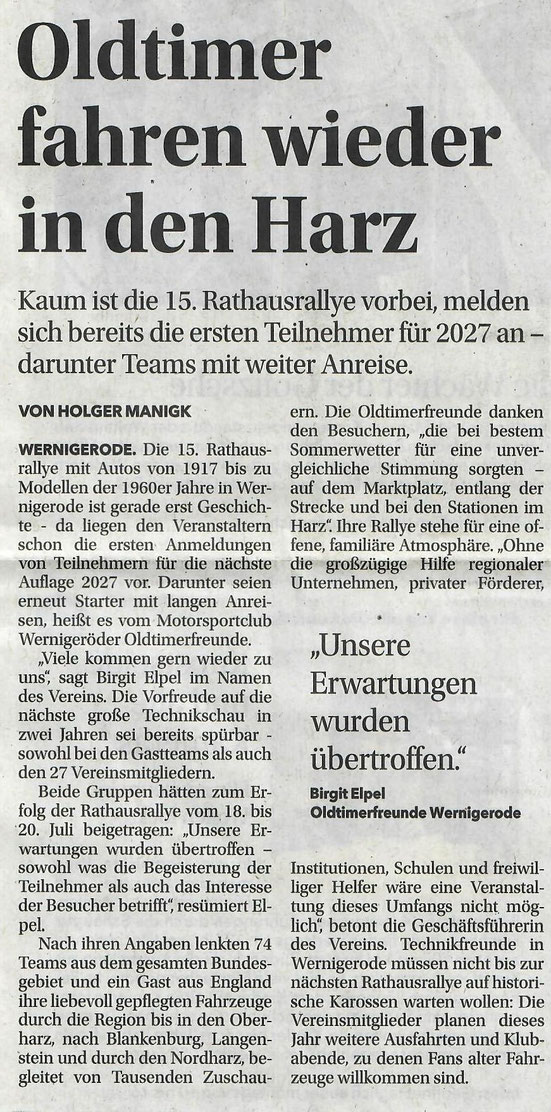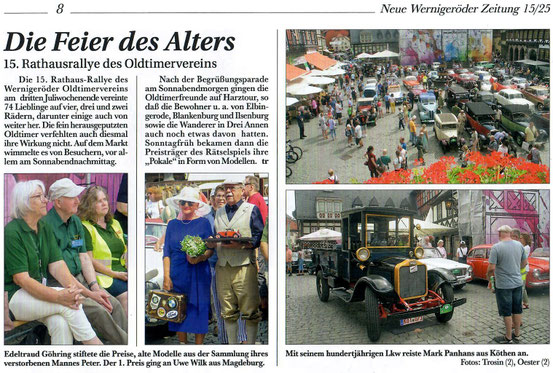 Zwei Wernigeröder Einwohner fanden am Sonntag Nachmittag keinen Oldtimer auf dem Marktplatz vor und waren sehr enttäuscht. Hunderte andere Oldtimerfreunde nutzten die vielen Stunden der Anwesenheit der Fahrzeuge aus und wurden nicht enttäuscht.